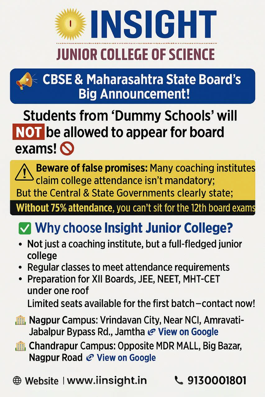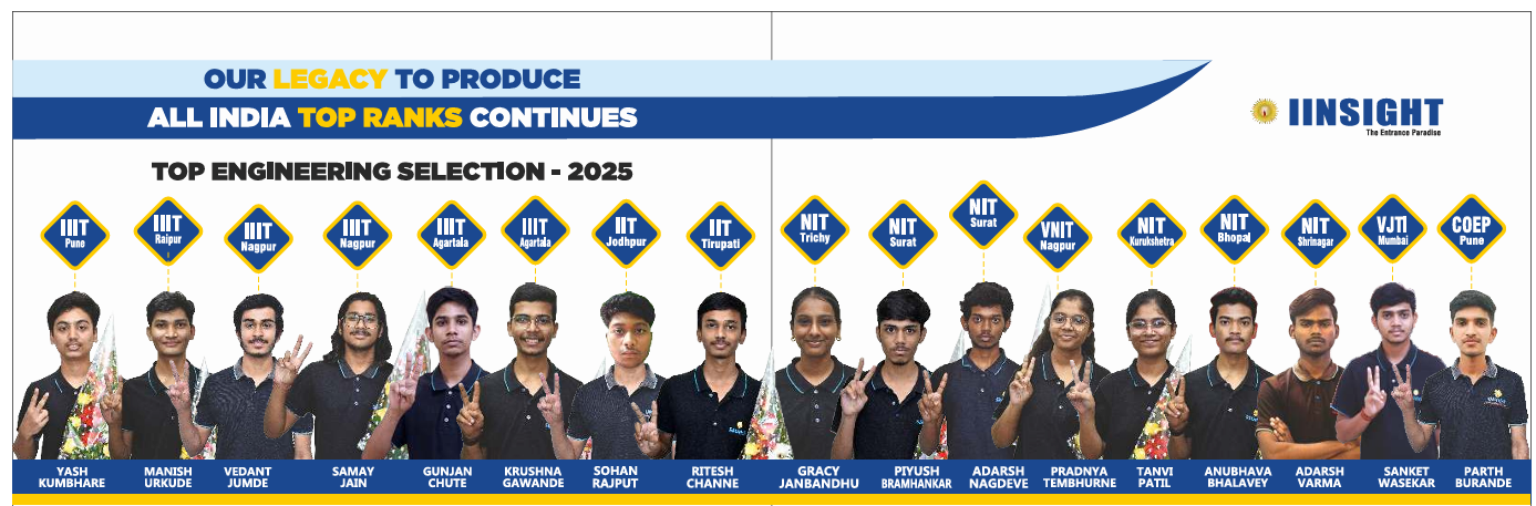 IINSIGHT is a renowned training Institute in Central India. A system that gives students the knowledge and abilities they need to take advantage of academic opportunities in an ever-evolving environment. IINSIGHT students have been achieving astounding success in prestigious national entrances, like JEE (Main / Advanced), AIIMS, NEET, NDA, and as well in XI & XII Boards. IINSIGHT is an exceptional center of learning that encourages Academic Excellence. IINSIGHT is a firm believer in self-sustaining learning! The ability to handle the complicated demands of job and life is a result of this continual, self-initiated quest of correct knowledge!
